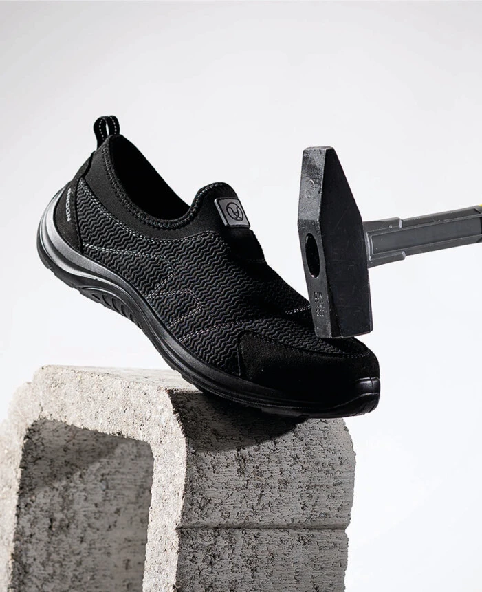 Bezpečnostní nazouvací mokasín s prodyšným svrškem na dvoukomponentní nástřikové podešvi PU/PU. Lehká tenká podešev s oblou patou je vhodná pro řízení vozidel i různé pracovní činnosti ve vnitřním prostředí. Snadné a rychlé nazouvání a vyzouvání obuvi.